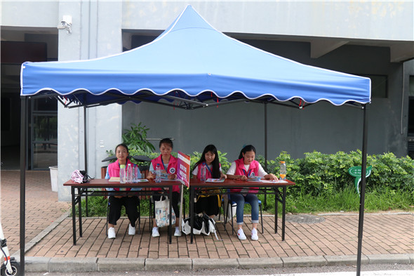 体育馆门口志愿者咨询点