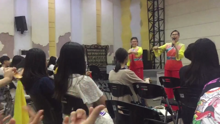 随后,两位老师现场教同学们唱客家山歌,先由王艳芬老师逐字逐句教同学们用客家话念歌词,再由刘桂芳老师带同学们齐唱歌曲。学习过程妙趣横生,同学们热情配合。最后两位老师拿出客家山歌演唱时伴奏的一大法宝——快板向同学们示范,并现场教学,同学们更是热情高涨,积极参与学习。在欢笑声中结束了这场别开生面的讲座。