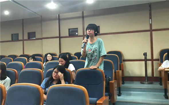 谢莲秀老师从语境文化及其分类入手,先简单地为我们讲述了情景语境、文化语境和儿童语境三者的含义及不同。接着分析了互联网时代下儿童的阅读及儿童语境的营造,讲述了儿童阅读的重要性及网络时代阅读的焦虑与应对;并教导我们“读”与“写”需要怎样的语境,最后分析了“儿童语境”创作的要素,并进行阅读举例。最后老师分析了儿童语境下的写作,从儿童文学的三大母题及儿童语境写作的要义两方面进行讲述,不仅总结了上述三点,并且联系了讲座的主题,将讲座推上高潮。讲座的末尾,谢莲秀老师分享了自己的写作经历,将山区留守儿童的故事以儿童的视角为我们铺展开来。