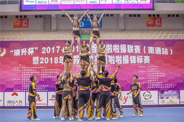 2018年6月1日至6月3日“瑞升杯”2017-2018年全国啦啦操联赛南通站暨2018年江苏省健美操、啦啦操锦标赛在南通市体育馆举行,本次比赛共有71支代表队,1400余人参赛。