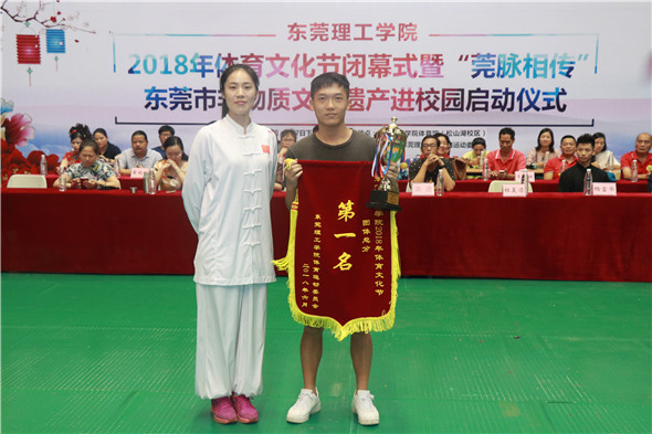 随后,进行了“莞脉相传”——东莞市非物质文化遗产进校园启动仪式。在本次启动仪式上,公司还特别邀请了太极拳全国冠军杜昊滢和南拳全国冠军杨富华进行现场表演,他们的表演十分精彩。不仅如此,粤曲、古琴音乐、客家山歌、洪拳、麒麟舞的表演都让人眼前一亮,引人注目。