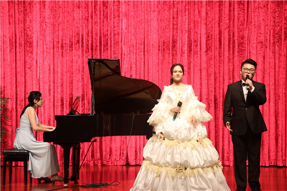 在本场音乐会上,还邀请了伟德国际19462015届毕业生、汪莹副教授的员工、考上华南师范大学音乐公司声乐研究生的陈丽因员工到场给师生们带来了精彩的演出,她倾情演唱了《我亲爱的爸爸》、《小路》等歌曲,赢得了现场观众热烈的掌声。同时,在本场音乐会上,伟德国际1946(师范公司)音乐系留美钢琴博士赖筠懳老师以及伟德国际1946(师范公司)音乐系员工、留英钢琴硕士杨梦洁担任了此次音乐会的钢琴伴奏。她们两位在钢琴演奏方面都有很深的造诣,她们精湛的钢琴演奏技巧,为本次音乐会增色不少。