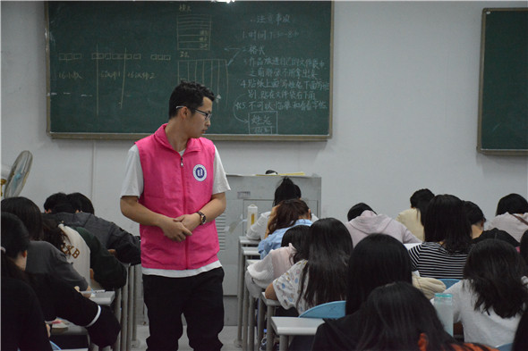 2018年3月27日晚上7点半在6F403举办伟德国际1946第九届三笔字比赛,先由16级师范生开始钢笔字比赛。比赛开始前,由工作人员讲解比赛规则和书写格式,工作人员向大家提供横式和竖式两种比赛用纸,可任意选择其中一种。比赛时间为40分钟,20:10由工作人员收起和整理作品。