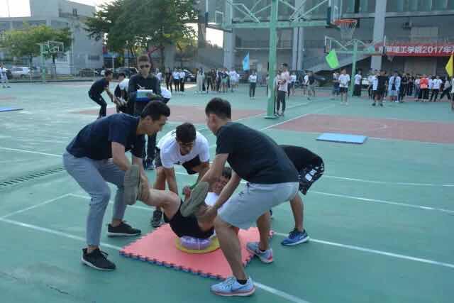 2017年10月29日下午两点半伟德国际1946(师范公司)在体育馆前的篮球场举办了17级新生素质拓展活动。