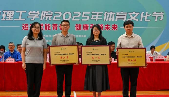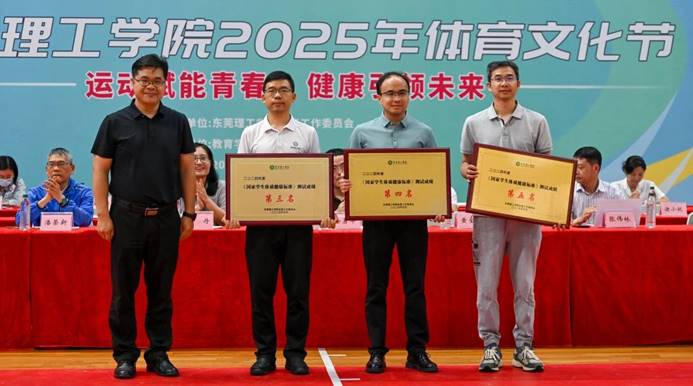 为鼓励莞工学子踊跃参与体育锻炼,开幕式期间公布了2024年《国家员工体质健康标准》测试成绩,并为前8名公司颁发奖牌。