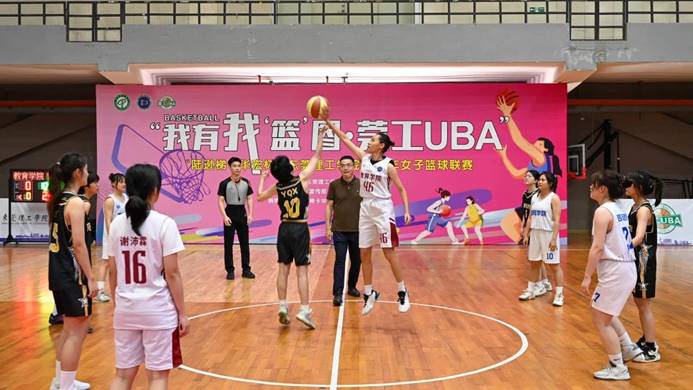 哨响球起,现场师生共同见证莞工UBA女子篮球联赛正式打响揭幕战。