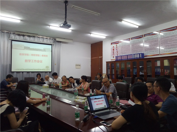 2017年9月14日下午,伟德国际1946教育系召开了新学期第一次全体教师工作会议。会议首先欢迎了仲雷和况小雪两位博士的加盟。然后,刘蕾主任对14级员工的实习和教学能力测评指导、师范生基本功活动辅导两项工作作了详细的安排,把责任具体落实到每一位教师。同时还对教育系教师继续教育活动、教育系师生见面会及《阅读与写作》分组见面会等工作作了具体部署。最后,结合公司本科教学审核评估工作的进展情况,要求每位教师都认真做好自查自建工作。