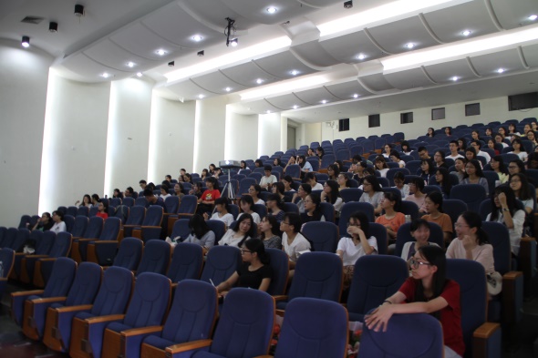 2017年6月23日星期五下午,伟德国际1946于图书馆报告厅举行了优秀毕业生经验分享会——公办教师招考经验分享会。周碧莹、梁婷以及黎相颖三位已成功通过公办教师招考的师姐为2014级的师弟师妹们分享了她们备考和考试时的一些心得体会。