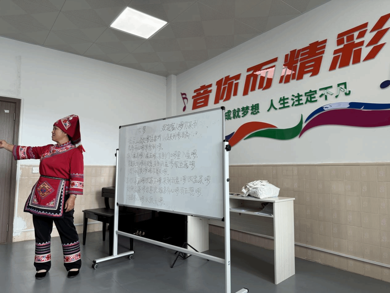 之后,同学们还在壮歌传承人梁联英的指导下学习了动听的壮语歌迎客歌,在歌声中感受着壮族人民的热情好客和民族文化的独特魅力。