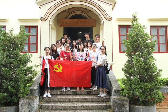 全体党员在东江纵队司令部旧址前合影留念