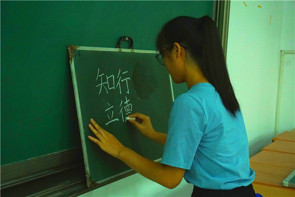 同学现场展示粉笔字
