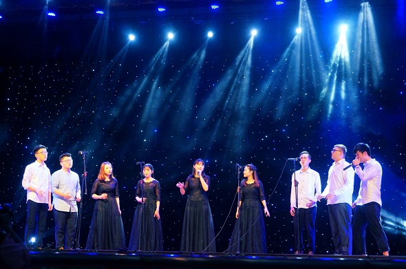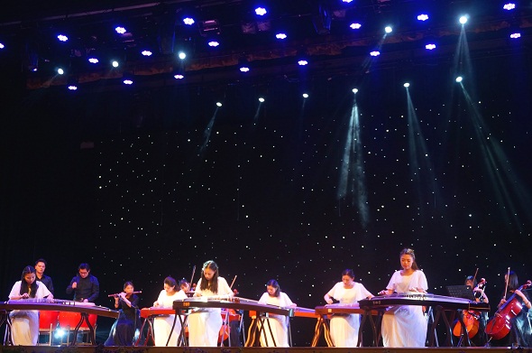 音乐会上,一曲民乐合奏《奇迹》拉开了音乐会的序幕,随后,伟德国际19462017届音乐学专业的同学们表演了钢琴独奏《贝多芬升C小调奏鸣曲(月光)第三乐章》、古筝钢琴协奏《陆游与唐婉》、古筝独奏《溟山》、吉他独奏《classical gas》、琵琶重奏《琵琶四人行》、双钢琴演奏《骷髅之舞》等器乐节目,演奏者们将高难度的技巧和音乐强烈的抒情性结合在一起,游刃有余的演奏给了我们不一般的享受。女声独唱《我要你》、《老师我想你》等曲目,时而低沉、时而高亢,紧紧牵动着观众的心。舞蹈《悦动的心》惊艳了全场,给了观众不一样的视觉冲击。还有阿卡贝拉《calor of the bells》,一种有“人声乐团”之称的不依赖乐器的人声音乐,一种非常特别的音乐形式,给观众耳目一新的感觉。最后还有老师们给毕业生们的寄语,希望同学们乘着歌声的翅膀,放飞梦想,越飞越远,同时,也不要忘记常回母校看看。