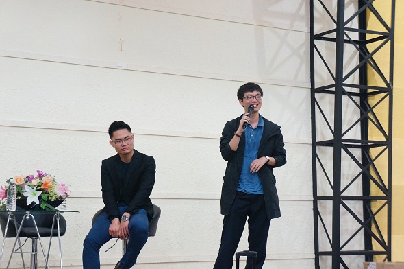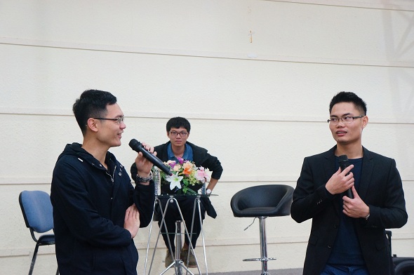 会议首先播放了团总支工作回顾视频,瞬间点燃了现场气氛,使在场的人颇有感触。接着现团总支副书记蔡炜锋发表工作总结并分享了工作经验。随后前团总支副书记黎建强上台发言,其幽默风趣而不乏道理的讲话使现场的气氛点燃到极点。他特别强调:不管在学习还是生活中都不要怕吃亏,并且要有明确的目标和志向,要有为目标不懈追求的精神。在后面文化沙龙的环节中,部长们和小干事们都纷纷地提出自己对于未来的迷茫以及在生活、工作中遇到的各种困难,前团总支书记黎志斌和前团总支副书记黎建强都结合自己的经验,耐心地为他们一一解开心中的疑惑。