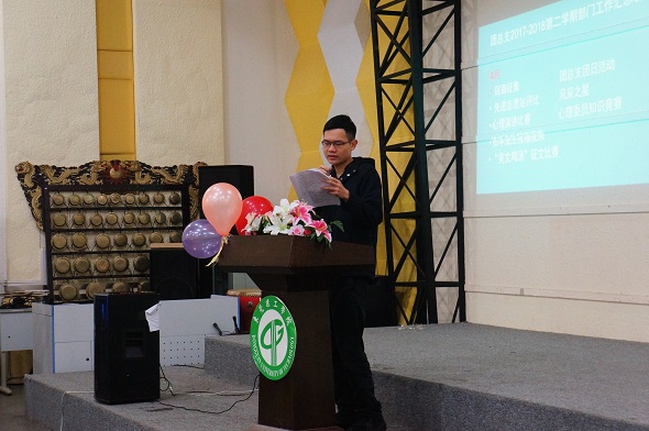 现团总支副书记蔡炜锋总结团总支上学期工作情况