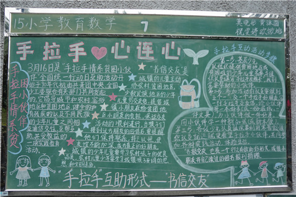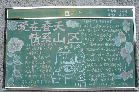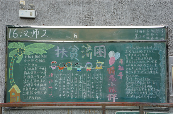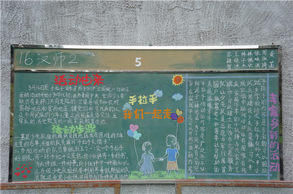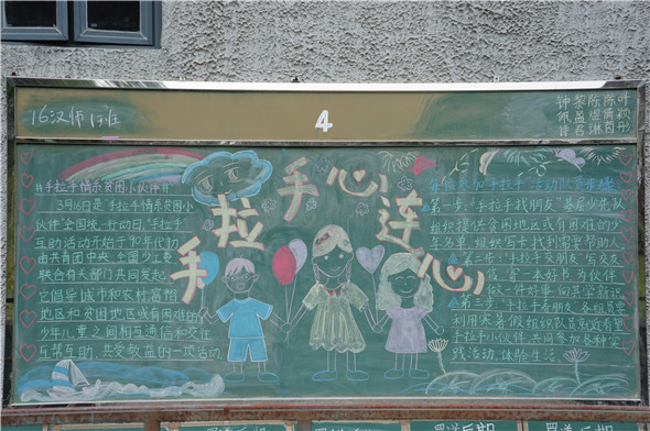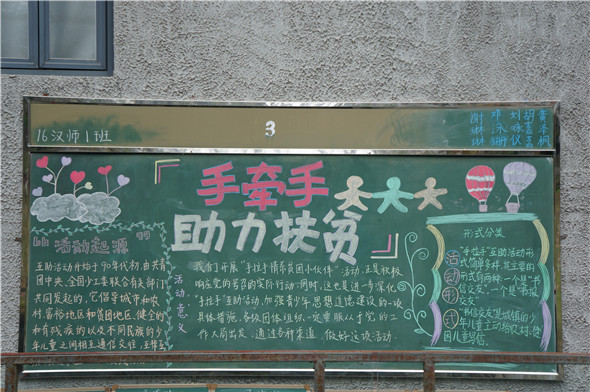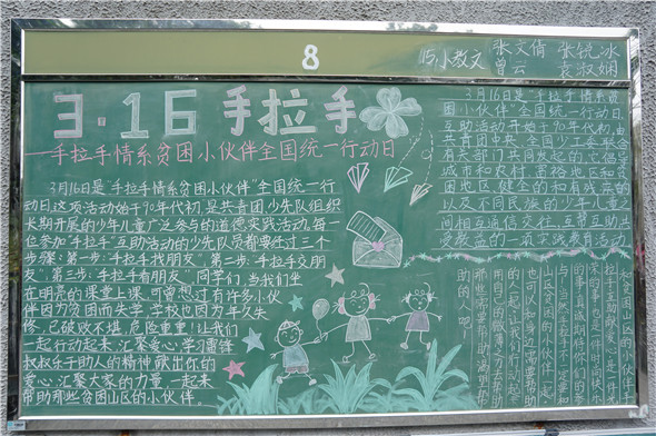 3月16日是“手拉手情系贫困小伙伴”全国统一行动日。公司情系小伙伴,举办了以“手拉手情系贫困小伙伴全国统一行动日”为主题的师范生黑板报展演。