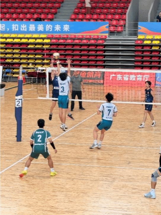 1/4 决赛阶段,球队精准贯彻赛前制订的战术,以3:0的比分战胜对手,晋级四强。在季军争夺战中,双方比分焦灼拉锯上升,我方前两局分别以25:21、25:17领先,第三局由于求胜心切,以13:25被对方扳回一局,第四局开始,我方队员迅速调整心态,依靠自由人黄梓坚稳定的一传,二传杨东硕合理的分配球,主攻陈立、袁宇轩,副攻陈杰成、苏梓劲,接应文增炫的强有力扣球,最终以25:22的比分赢下第四局,球队以 3:1 获胜夺得季军。