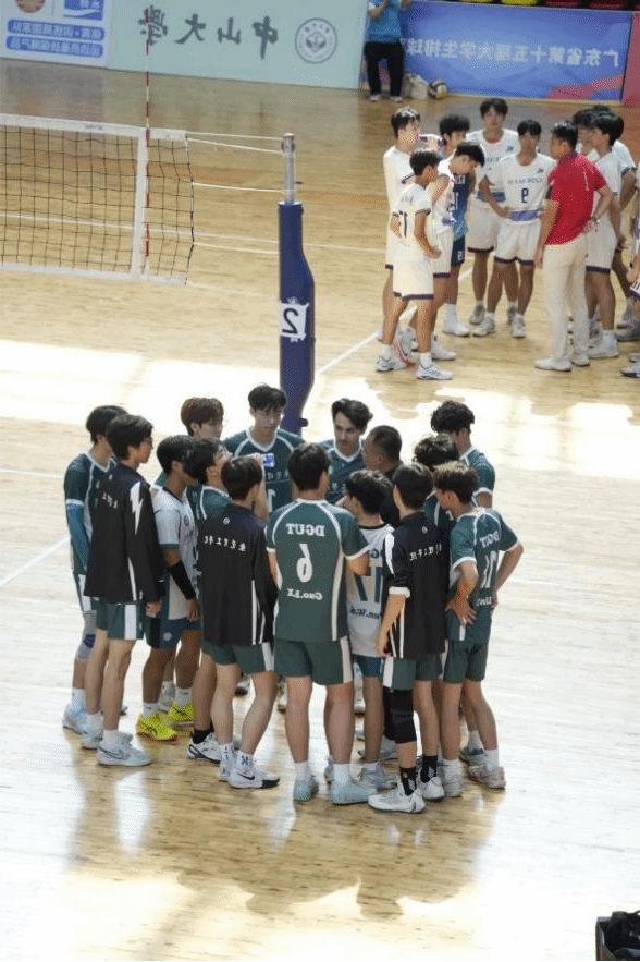 本次甲 B 组高校强队云集,竞争激烈。莞工男排备赛期间高标准训练,教练团队量身定制方案。小组赛中,球队状态强劲,面对4 支对手,凭精准发球、默契配合与顽强防守四战全胜,以小组第一晋级第二阶段淘汰赛。
