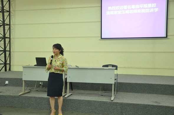 本次报告会由广东音乐曲艺团团长、一级演员、著名粤曲平喉星腔演唱家梁玉嵘老师主讲。