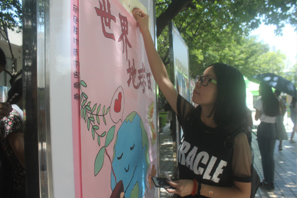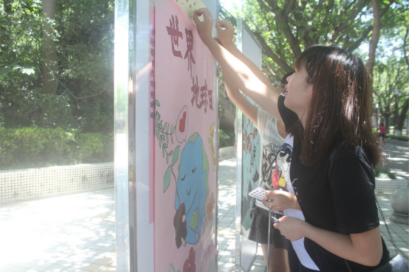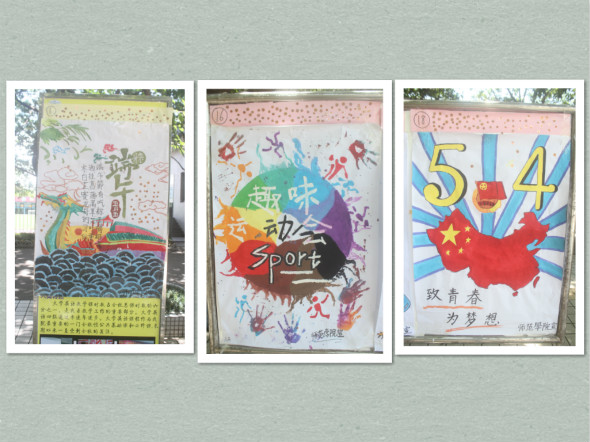 21号中午,师范公司在莞城校区一饭空地前举行了本学期的“手绘海报评比比赛”。尽管烈日高照,但干事们的工作干劲却激情似火,活动在紧张又有序的工作下正式拉开帷幕。