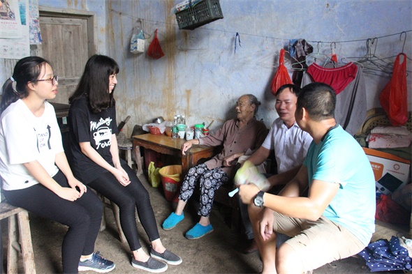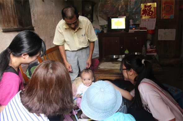 在开展义教活动期间,老员工同学们探望了孤寡老人和有身体缺陷的孩子的家庭。有的老人住在只有三户人家的山上;有的老人得了白内障;有的老人的家被雨水冲垮,只能暂住在荒废已久的房子里。我们无法改变他们的现状,只能力所能及地帮助他们做一些普通的家务,陪他们聊一聊。孩子们因为家庭经济困难或身体有缺陷,学习上有较大的困难。老员工同学们为他们送上学习用品,希望他们能认真学习,感受到社会的温暖。