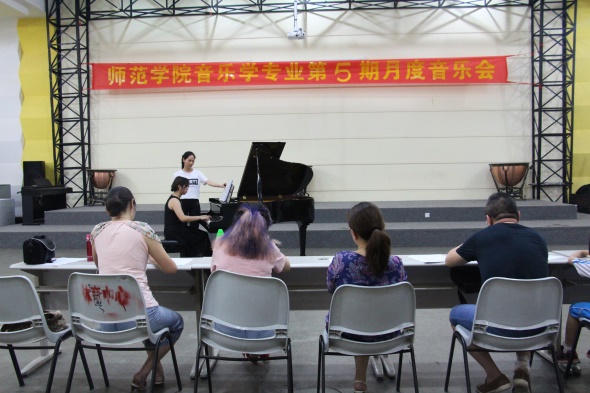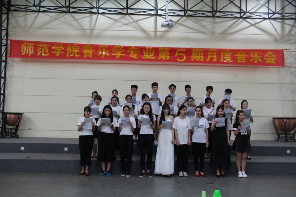 2016年5月26日,“师范公司音乐学专业第5期月度音乐会”在师范公司演奏厅顺利举行。师范公司副经理琚丹红经理、音乐学专业负责人黄琼老师、师范公司杨艳老师、谭潇潇老师和颜乐老师出席了本次音乐会,参与此次音乐会的还有13-15级音乐学全体同学。