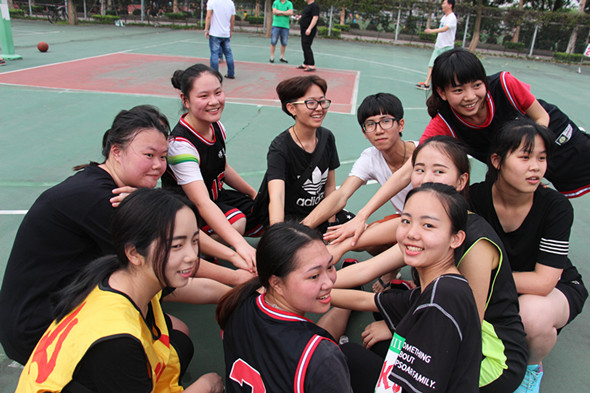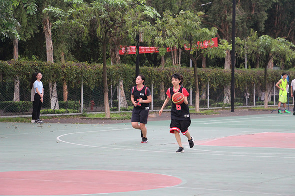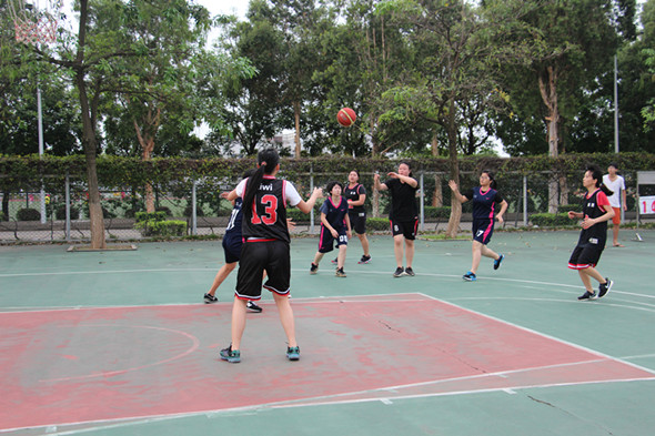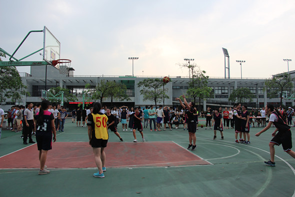 4月28日下午,公司女篮对阵建筑工程系,炎热的天气并没有冲淡同学们的热情,许多同学到比赛现场给球员们加油助威。