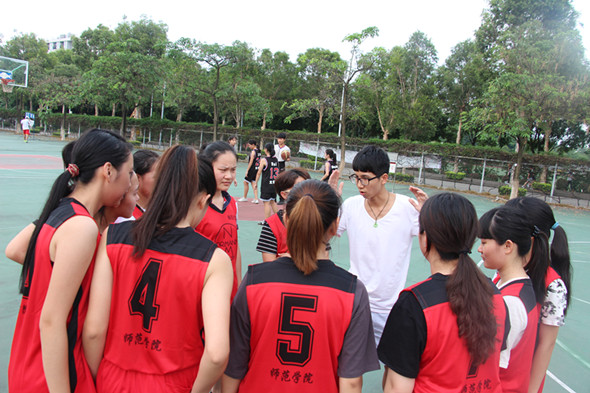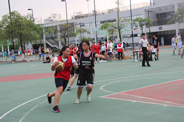 5月19日下午在篮球场师范公司女篮对阵文公司,同学们早早到达球场为球员们加油鼓劲。