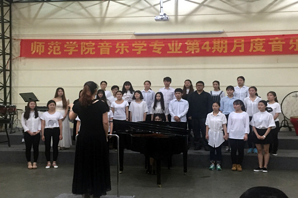 2016年4月14日晚,师范公司在艺术楼演奏厅举办了第四期月度音乐会。师范公司党总支书记杨万江、副经理琚丹红、音乐学专业负责人黄琼以及汪莹、史旻、谭敏、丁雪、颜乐、杨艳、林雄文、谭潇潇等音乐专业老师出席了音乐会。全院的音乐学专业员工参加了音乐会。
