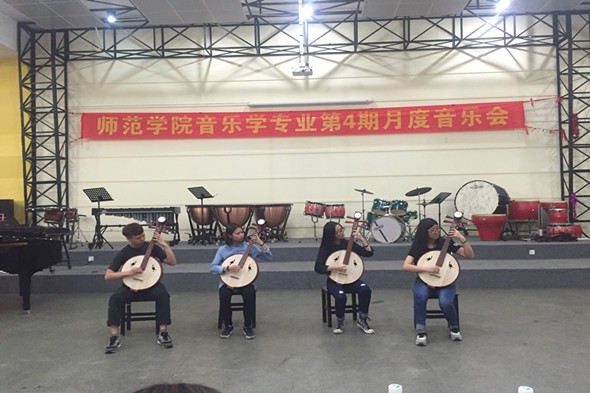 在音乐会上,同学们表演了16个自编自演的节目。同学们表演的节目形式多样,有器乐合奏、声乐合唱、钢琴独奏、钢琴四手联弹、琵琶齐奏、中阮齐奏、古筝独奏、大提琴合奏、舞蹈等等。每个节目都是同学们在老师的指导下,结合自己所学的音乐、舞蹈知识自编自导自演的。本期月度音乐会由2013级音乐教育班和2013级群众文艺班承办,由员工独立自主地策划并举办整场音乐会。音乐专业的老师们为每个节目进行了现场评分。