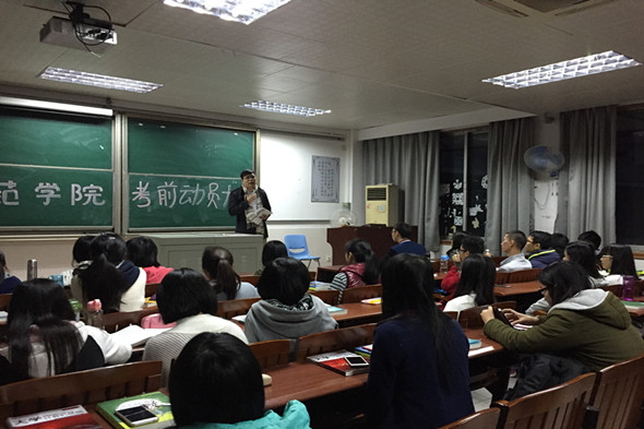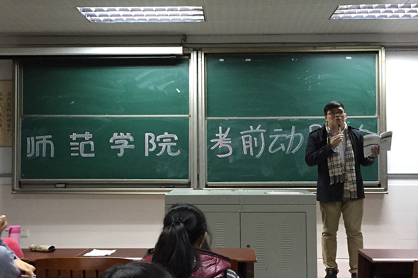 12月8日下午,师范公司辅导员袁志军老师在莞城校区教学楼1410召开了考前动员大会,就即将到来的期末考试给同学们打了“预防针”。