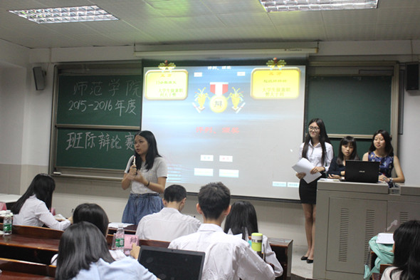 11月17日晚,师范公司在莞城校区教学楼3407举行了2015-2016年度班际辩论赛。本次比赛邀请了政法公司辩论队队员雷蕾、李敏慧担任评委。15小学教育语文和15小学教育数学的同学就“老员工做兼职是否利大于弊”这一辩题进行了激烈的辩论。