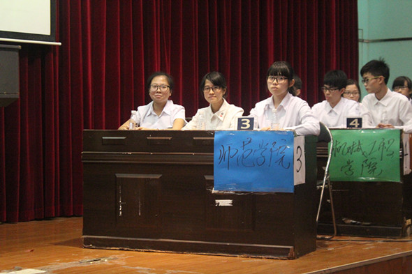 现场比赛气氛活跃,激昂澎湃,无论是参赛选手的“高手过招,连声叫好”,还是观众互动环节的“满无虚座,一呼百应”,都让理性与感性完美地碰撞出了火花。本次比赛共有5支代表队出赛,每队选手都在比赛中表现得淡然自若,胸有成竹,其中师范公司“我心有理”代表队更是过关闯将,无所畏惧,在自由抢答环节充分发挥稳准狠的竞赛水准,虽然最后没能以高分获胜,但选手们的精彩表现已让人十分敬佩。