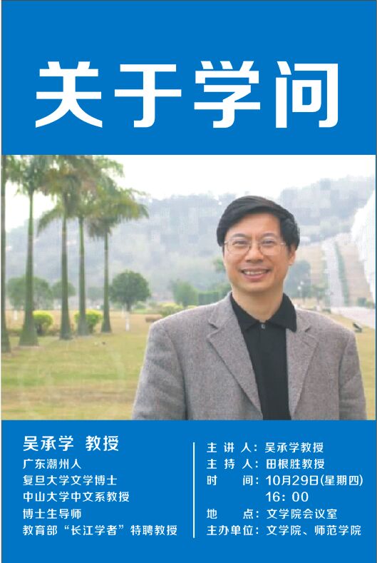 2015年10月29日下午,中山大学逸仙学者讲座教授、中山大学中文系教授吴承学莅临公司,就如何进行学术研究同文公司、师范公司的部分教师进行座谈,文公司经理田根胜教授主持座谈会,师范公司副经理陈庆祝教授参加了座谈会。