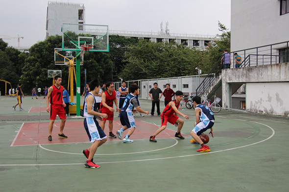 10月5号下午4点,师范公司大四毕业生篮球友谊赛在松山湖校区一饭后面的篮球场举行。