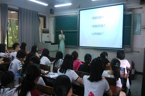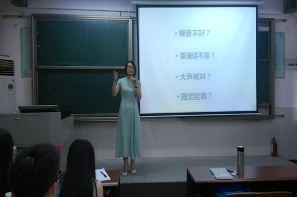 11月6日上午,师范公司刘蕾副教授在莞城校区教学楼6301为15级师范新生上了一堂别开生面的朗诵专业指导课。