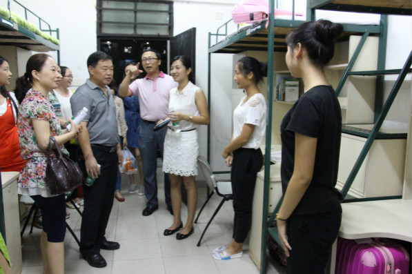 为了及时了解新生的情况,使2015级新生尽快地适应老员工活和解决他们遇到的问题,9月6日和9月7日晚,师范公司副经理陈庆祝、党总支书记杨万江、党总支副书记黄艺琦、副经理琚丹红和辅导员老师分别在莞城校区和松山湖校区走访了本院的新生宿舍,深入了解了新生到校后的住宿情况和遇到的问题。