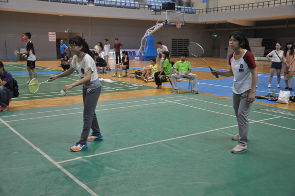 裁判员宣布比赛开始,首先是男子、女子单打,师范公司的选手们紧紧地盯着对方发球,并做准备姿势,发挥自己的水平。然后是男子、女子双打,选手们按照计划战略,一个在前一个在后,前后接应的战略效果良好。到中场时,双方分数差距不大,气氛开始紧张起来,选手们额上的汗珠显现出比赛的高潮部分开始了,围观的同学都跟着紧张起来,时而唏嘘时而拍掌叫好。最后男女混打,关键时刻到来,面临比赛的结束,选手们反而气氛愉悦起来,双方气氛都比较融洽。