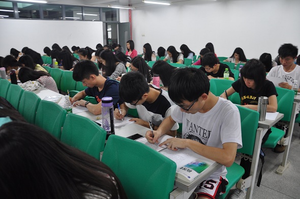 同学们认真写粉笔字