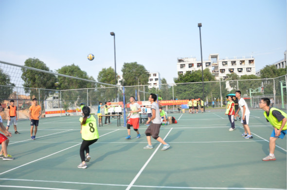 随着裁判员的口哨声响起,比赛很快进入高潮。运动员们在场上纷纷拿出自己的绝招,扣球、发球、一传,二传,每个环节都尽力发挥,严谨认真,他们将闪亮的青春激撒飞扬,在赛场上挥洒辛勤的汗水,充分展现了团结和谐的良好风尚和老员工文明健康的精神风貌,还更好地诠释了体育精神!