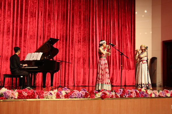 2015年4月23日晚上,师范公司在学术会议中心报告厅顺利举行了2015届音乐学专业毕业生器乐专场音乐会。出席晚会的领导和老师有师范公司副经理陈庆祝、党总支书记杨万江、党总支副书记黄艺琦、副经理琚丹红以及颜乐老师、史海峰老师、谭敏老师、杨艳老师等,部分毕业生的家长及亲朋好友也不远万里地赶来公司观看晚会。音乐会现场座无虚席,气氛热烈。