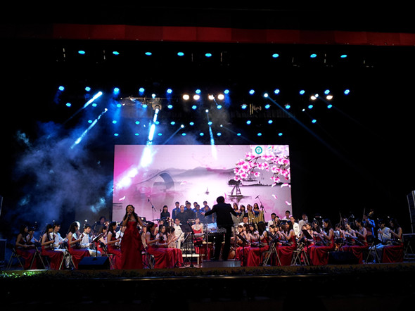 音乐会上,师范公司民族交响乐团为观众们演奏了《春节序曲》、《云南风情---闹元宵》、《高山青》、声乐作品《龙船调》、《康定情歌》、《响宴》、《水浒传》以及大提琴独奏《坡》、古筝齐奏《将军令》、打击乐重奏《太阳的儿子》、《西域驼铃》等曲目。乐团的精彩演出,赢得全校师生的热烈欢迎和由衷的喜爱。