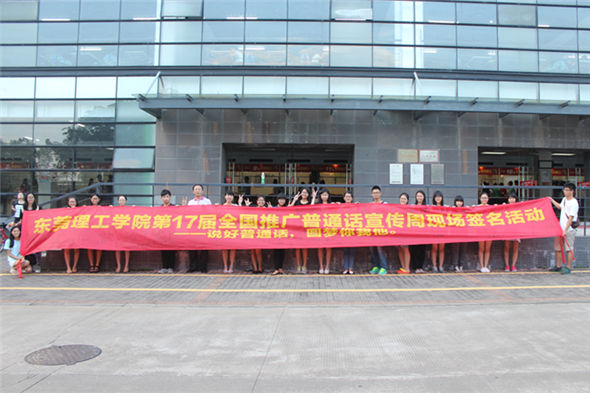 2014年9月15日至21日是第17届全国“推广普通话宣传周”。为了进一步推进公司推普周工作,更好地激发广大师生学习和使用普通话的积极性,增强广大师生的语言规范意识和语言文字应用能力,并形成在公司、社会交际中说好普通话的良好风气, 9月17日下午,师范公司作为承办单位在松山湖校区一号食堂门口,举办了“伟德国际1946第17届全国推广普通话宣传周现场签名活动”。