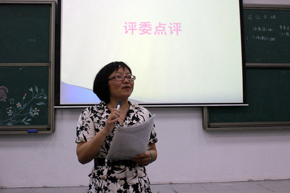 最后由郑陶凌老师进行了评委点评。郑老师首先肯定了参赛选手的表现,她对选手们大方自然的仪表姿态、内容切合主题、层次分明、语音清晰等表示赞赏,同时,也指出了部分选手存在的逻辑不当、思维混乱的问题。同时,她还一一对每位参赛选手进行了具体的指导,提出“演讲不只是讲,还在于表演”,他提出要将演讲与朗诵区别开来,演讲的内容要更加生动,演讲要更有感染力。