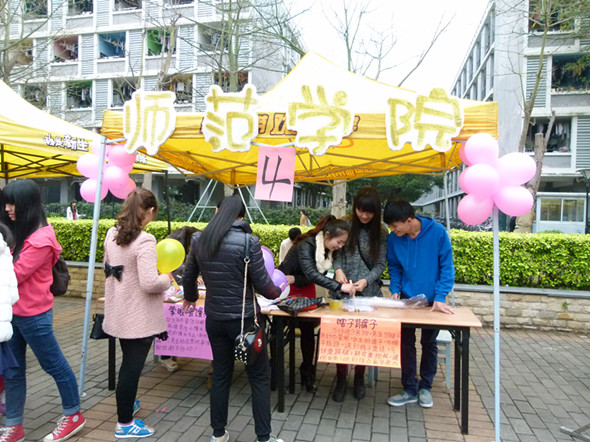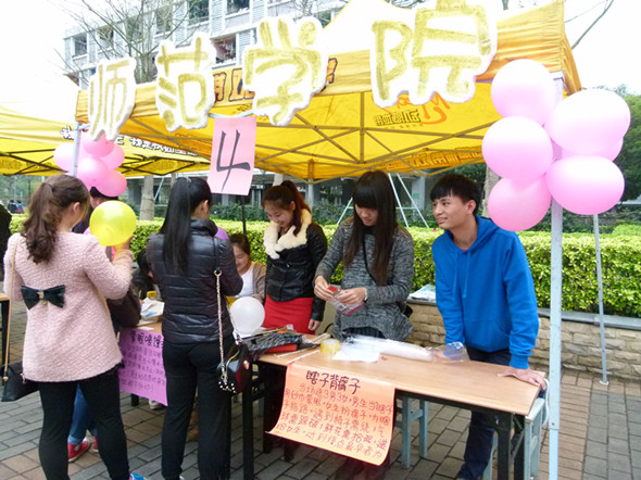 师范公司也为女生节活动做了精心准备,设置了如“蒙眼睛喂馒头”、“瞎子背瘸子”等趣味游戏,参与活动者还可以获得精美的小礼品。有许多同学踊跃参与,同学们在游戏中得到快乐,现场充满了欢声笑语。