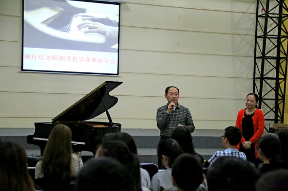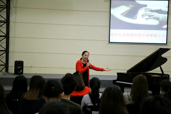 在展示会上,琚丹红老师带领所教的大一至大三的10位员工,为师生们带来了一场精彩的演出。随着浪漫的肖邦圆舞曲徐徐响起,展示会拉开了序幕。接下来,观众们欣赏了古典时期、浪漫时期、印象派以及近现代的中外钢琴演奏。在最后一曲京腔京韵的《皮黄》结束后,现场观众掌声不断,展示会在热烈而欢快的气氛中圆满地落下了帷幕。