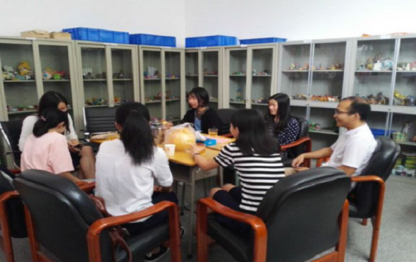 随后,负责人刘瑜和项目指导老师魏转麟就2016年广东省老员工创新创业训练项目《沙盘游戏技术在地方高校朋辈心理辅导中的实践研究》进行了深入交流。在交流中一致认为可以尝试通过社区开展活动的方式,面向大三大四的员工开展朋辈辅导,以期达到帮助员工缓解就业压力的朋辈心理辅导效果。