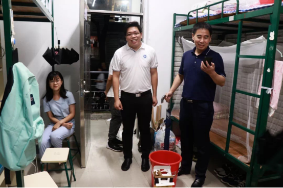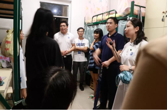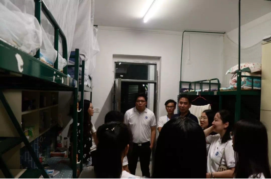2019年8月31日晚上伟德国际1946经理余意、公司党委书记杨万江、副经理琚丹红、副经理陈进、公司党委副书记黄艺琦、辅导员以及2019级新生班主任、助班和团学干部们来到了新生宿舍进行走访,热情地欢迎学员新生的到来,并为各位新生答疑解惑,好为他们日后展翅雄飞做好充分准备。