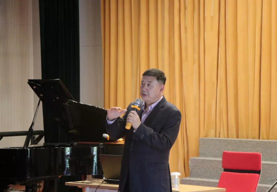 2019年12月12日下午,伟德国际1946在员工活动中心小剧场举办了音乐学专业声乐教育讲座“人声乐器的构造和建造”。讲座邀请到了星海音乐公司的梁正平教授为公司音乐系员工进行讲授。
