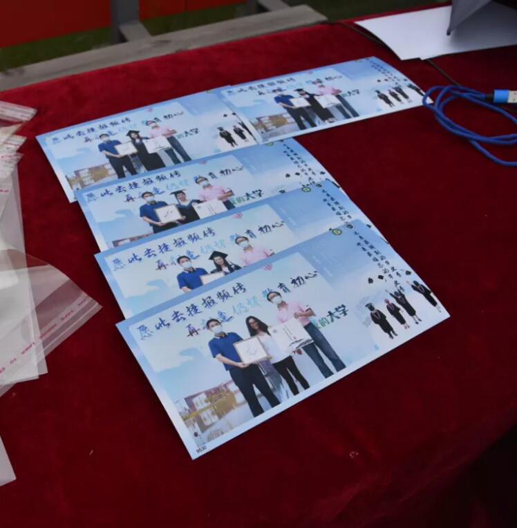 没过一会,毕业生们就可以亲手拿到刚拍的毕业纪念照,将与老师、同学和大学的回忆定格在这张照片中。