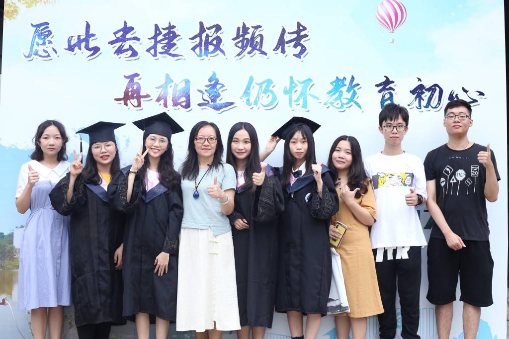 班主任老师与毕业生们合影留念